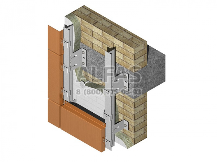 Вариант Econom. Экономичный вариант навесных вентфасадов. Кронштейны крепятся в несущие стены зданий.