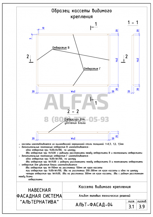 Фасадная система Альт-фасад 04 под Металлокассеты