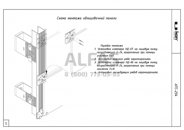 Фасадная система U-kon ATC-234 под Фасадный керамогранит